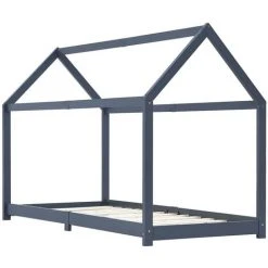 Topdeal Kids Bed Frame Grey Solid Pine Wood 70×140 Cm VDTD24215