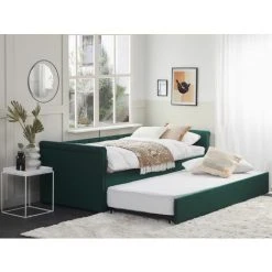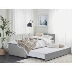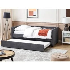 Beliani Modern Corduroy EU Single Trundle Bed Frame Nailhead Trim 3ft Dark Grey Mimizan