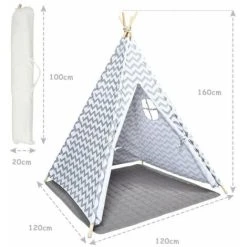 Gymax Kids Teepee Tent With Floor Mat Cotton Canvas Indian Indoor Outdoor Play House