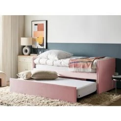 Beliani Trundle Bed Light Pink Glam Velvet Upholstery Slats EU Single Troyes