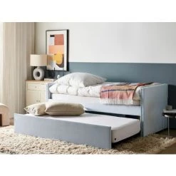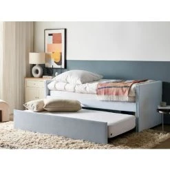 Beliani Trundle Bed Velvet Upholstery Slatted Base EU Single Light Blue Eyburie