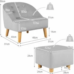 FAMIHOLLD Kids Children Sofa Seat Armchair Lounger Couch Furniture With Footstool – White