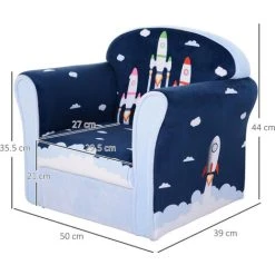HOMCOM Kids Mini Armchair, Planet-Themed Chair W/ Wooden Frame, Non-Slip Feet