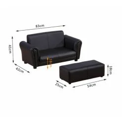 HOMCOM 2 Seater Toddler Chair Kids Twin Sofa Double Seat Armchair W/ Footstool Black