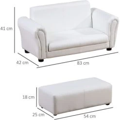 HOMCOM 2 Seater Toddler Chair Kids Twin Sofa Double Seat Armchair W/ Footstool White