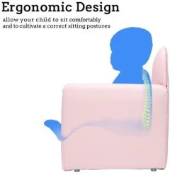 Unho Pink Velvet Cute Child Armchair Childern Seat Wood Frame With Footrest Padding Foot Stool