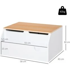 HOMCOM Wooden Kids Toy Box Children Storage Chest Organiser Book Slot White