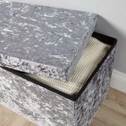 Home Source Large Folding Ottoman Silver Ice Velvet Fabric Chest Solid Storage Space Saving