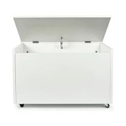 Leomark Large Wheeled Wooden Toy Box For With Stool Seat - White