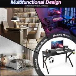 Costway 110cm K-shaped Gaming Desk Racing Style PC Computer Table W/Cup Holder & Hook