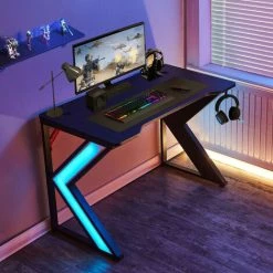 CLIPOP Ergonomic RGB Gaming Desk,110 Cm Home Office Computer Desk With K-Shaped Metal Legs And Headphone Hooks