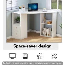 Abrihome L-Computer Desk Corner Computer Desk With Large Storage Space Study Desk Laptop Table For Home Office, White