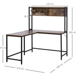 HOMCOM Industrial L-Shaped Work Desk & Storage Shelf Steel Frame Adjustable Feet
