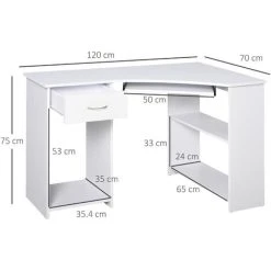 HOMCOM L-Shaped Corner Computer Desk W/ 2 Shelves Worktop Keyboard Tray White