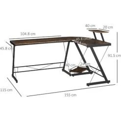 HOMCOM Industrial L Shaped Desk Round Corner Workstation For Home Office