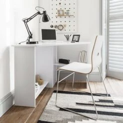 Home Discount Hetton Corner Computer Desk 2 Shelf PC Workstation Shelves Storage Home Office Table, White