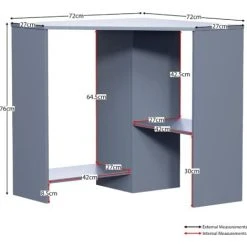 Home Discount Hetton Corner Computer Desk 2 Shelf PC Workstation Shelves Storage Home Office Table, Grey
