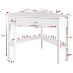 SoBuy White Wood Triangle Computer Corner Table With Drawer, FWT31-W