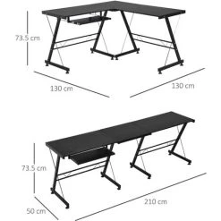 HOMCOM L Shape Desk Straight Corner Table Office Gaming Laminated Sturdy Black