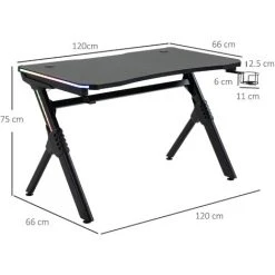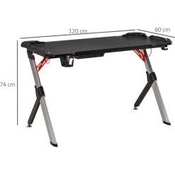 HOMCOM LED Game Office Desk Computer With Cup Holder 2 Cable Management Black