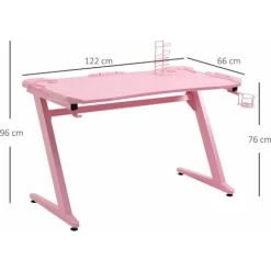 HOMCOM Gaming Desk With Gamepad Holder Cup Holder Headphone Hook Pink