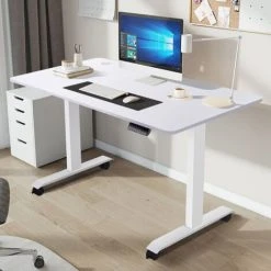 Devoko Height Adjustable Standing Desk With Electric Motor, Computer Desk, Intelligent Memory Height, Collision Protection,140 Cm,White/White With Wheel