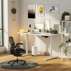 Devoko Standing Desk 140CM Electric Height Adjustable Desk Stand Up Home Office Computer Desk T-Shaped Metal Bracket Desk With Wood Tabletop And Memory Settings,White