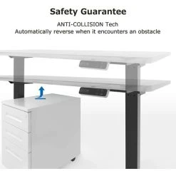 FLEIXSPOT FLEXISPOT E6B Height Adjustable Electric Standing Desk Frame Only Three-Stage With Anti-collision System, Heavy Duty Steel Stand Up Desk With Automatic Memory Smart Keyboard (Black Frame)