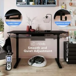 FLEXISPOT Electric Height Adjustable Standing Desk Sit Stand Desk Adjustable Desk Stand Up Desk With Memory Pannel-(Black Frame+100cm Black Top)