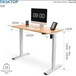 FLEXISPOT Electric Height Adjustable Standing Desk Sit Stand Desk Adjustable Desk Stand Up Desk With Memory Pannel-(White Frame+100cm Maple Top)