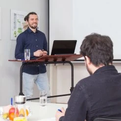 Relaxdays XXL Laptop Table Height Adjustable, 110 X 100 X 50 Cm, Wood, Mobile Lecturn, Wheels With Brakes, Notebooks, Projecters, Laptops, 2 Surfaces, Ebony Black