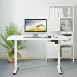 Tectake Motorised Standing Desk Frame (71 To 121cm Tall) – Computer Desk, Standing Desk, PC Desk – White