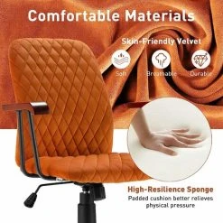 COSTWAY Velvet Office Chair, Ergonomic Swivel Computer Desk Chair With Rubber Wood Armrests, Adjustable Rolling Rocking Executive Task Chairs Tufted Leisure Seat For Home Office Bedroom (Orange)