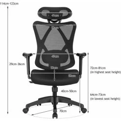 Casaria Ergonomic Mesh Office Chair 110 Kg Adjustable Height Computer Desk High Back Breathable Padded Rocker Seat Home Work Swivel White Black Black