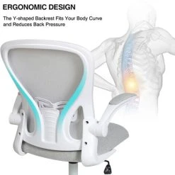 Puluomis Office Chair, Ergonomic Desk Chair, Swivel Computer Chair, With Lumbar Support, Flip Up Armrests, 30° Rocking Function, Height Adjustable, Light Grey