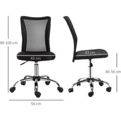 Vinsetto Armless Office Chair Ergonomic Height Adjustable Mesh Back Wheel Black