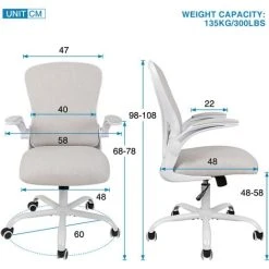 Puluomis Office Chair, Ergonomic Desk Chair, Swivel Computer Chair, With Lumbar Support, Flip Up Armrests, 30° Rocking Function, Height Adjustable, Beige