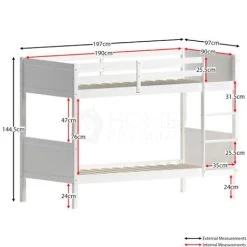 Humza Amani Lala White Wooden Bunk Bed, Converts To 2 Small Single Beds (Frame Only) – 2FT6 Small Single