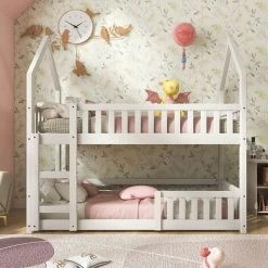 HOME DETAIL Miller White Wooden House Bunk Bed