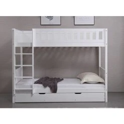 Humza Amani Panana Wooden Bunk Bed With Large Storage Drawer, Available In Grey And White – White Frame