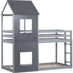 Livingandhome Modern Bunk Bed Slatted Board House Shaped