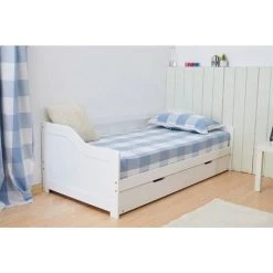 Devenirriche Pull-out Sofa Bed Frame White Pinewood 90×200 Cm