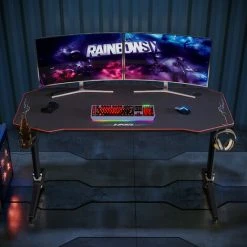 Costway Large Computer Gaming Desk Carbon Fiber Surface Z-Shaped Professional Game Table