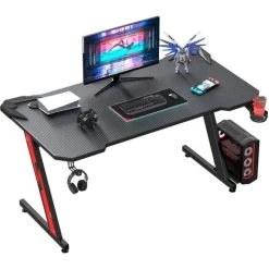 Devoko Z Shaped Gaming Desk Carbon Fiber Desktop PC Computer Desk Office Desk,Black