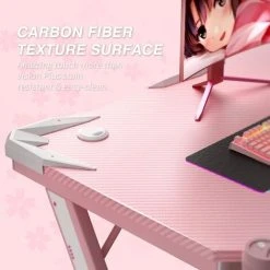 Devoko Z Shaped Gaming Desk Carbon Fiber Desktop PC Computer Desk Office Desk,Pink