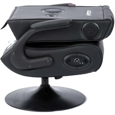 The BraZen Emperor XX 2.1 Elite Esport DAB Surround Sound Gaming Chair is our top of the range British designed pedestal sound chair offering. Everyone at BraZen is both proud and excited at the industry beating comfort and performance this chair offers the discerning gamer. The Emperor incorporates the latest industry knowledge so the gamer gets the best alround experience. The chair incorporates a quality two speaker and subwoofer surround sound system. The BraZen Emperor has a unique “DAB” control panel – this incorporates an RGB push button controller which allows the gamer to choose as appropriate between “Digital”, “Analogue” or “Bluetooth” connectivity. The chair comes with a complimentary selection of analogue audio and digital (optical) cables. The chair is capable of connecting either directly or indirectly to almost any device which has an audio output – including all variants of Nintendo, Playstation and Xbox games consoles. The Emperor is a generously proportioned genuine adult sized pedestal chair. The chair looks classy and is upholstered in stylish black and grey quilted leather-like PU fabric and covered in significant amounts of foam for added comfort. The chair has strong padded gun arms and folds to facilitate easy storage. The chair is mounted on a disc base and piston which facilitate 360 degree movement (when cables not connected). The chair is by design not height adjustable. FULL SPECIFICATIONS: Maximum recommended weight 100 kg; 2 built in speakers; 1 subwoofer; 12V/1.5 Amp control panel; black pedestal disc base, base plate mechanism and piston; two upholstered fixed arms; power adaptor; selection of complimentary analogue audio and digital/optical cables; and, screws to fix. This is not a toy – children to use under adult supervision. We recommend two adults assemble the chair. Suitable for ages 6 and above . Approximate measurements: 104 cm Height x 69 cm Width x 68 cm Depth.