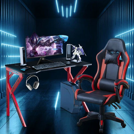 [Humanized Design]: This ergonomic game table provides 2 cable management holes to keep all wires in order and make your desktop tidier. The personalized headset hook will enhance our gaming experience. Store our game equipment in an orderly manner.