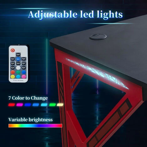 [Game Atmosphere Light Design]: This ergonomic computer desk is equipped with 7-color RGB lights, which can be changed to the lighting effects we want by remote control. Bring a cool and stylish atmosphere to your game room.