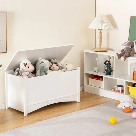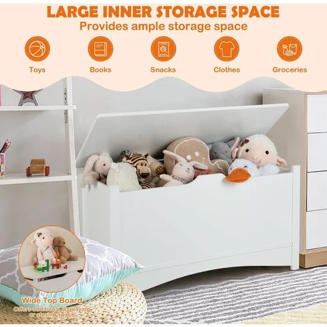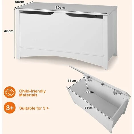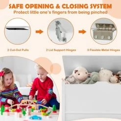 It’s time for you to buy a toy organizer for your little one. With beautiful white color and simple lines, it will fit well with different room styles. Measuring large size, this kid’s toy box is able to hold a variety of toys, dolls, blocks or kid’s clothes. With this toy box, your child will develop a good habit of sorting out their items, which frees parent’s hands. Besides, when kids feel tired after long-term playing, they can also use it as a child bench to have a rest. To ensure kid’s using safety, we design it with 2 cut-out pulls, 2 lid support hinges and 3 metal hinges. Plus, durable MDF panels allow it to accompany your little one for a long time. In addition, it’s easy to assemble and clean.
