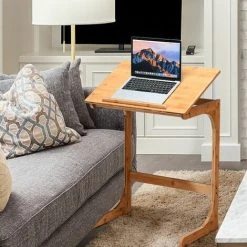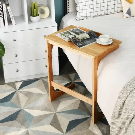 Our table will be a great addition to your space. Featuring 7 adjustable angles, the tabletop is free to adjust and helps you find the most comfortable posture. Also, the end table is specially designed in a C-shape structure, which allows you to slide the table under the sofa or bed when not in use. Besides, the end table is made of natural bamboo material that is not only eco-friendly but also wear resistant and high strength. Its waterproof surface is easy to clean with a damp cloth. The side table is suitable for various scenarios, such as living room, office, bedroom, etc. Just enjoying the snacks, working or reading with our portable side table.